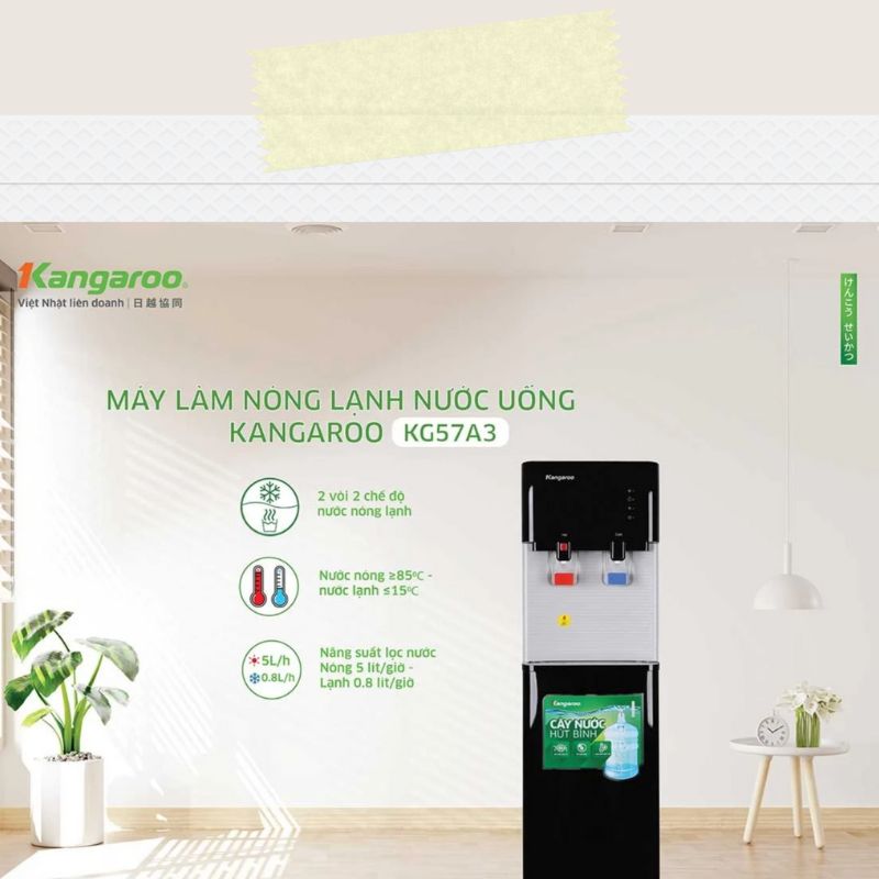 Cây nước nóng lạnh kangaroo KG57A3 được thiết kế hiện đại, màu đen quý phái. Cây nước hút bình kangaroo KG57A3 làm lạnh sâu, khóa nước nóng an toàn cho trẻ nhỏ. Cây nước KG57A3 phù hợp cho gia đình, công sở, văn phòng công ty. Dưới đây là những tính năng nổi bật của cây nước nóng lạnh hút bình kangaroo.